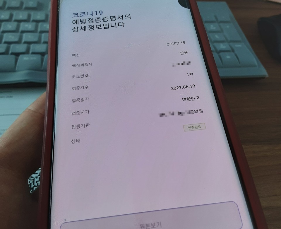 이렇게 백신접종 증명서를 확인 할 수 있습니다.